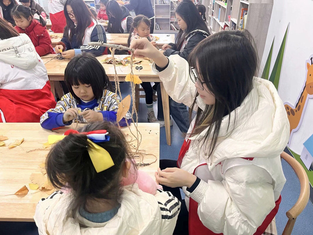 为保活动顺利进行,活动前夕志愿者们就忙碌在校园内收集制作捕梦网的落叶、断枝等材料。活动当天,志愿者们早早来到活动现场,开始了紧张而有序的准备工作。他们精心将制作捕梦网所需要的材料分发、放在每位小朋友的桌子上。随着小朋友的陆续到来,活动正式开始。志愿者们首先向小朋友们介绍了捕梦网的由来和寓意。然后小朋友在志愿者们的指导下亲手制作属于自己的捕梦网,将美好的梦想和祝福编织其中。在制作环节中,志愿者们采取了一对一的教学模式,确保每位小朋友都能的得到充分的指导和帮助。他们耐心的示范,讲解。小朋友们则是兴致勃勃地跟着者志愿者的步伐,一步一步地完成了自己的捕梦网作品。活动结束后,小朋友们纷纷展示自己的作品,并与志愿者们合影留念。活动当天,尽管天气寒冷,但汀兰苑社区的活动室却洋溢着温暖与欢乐的氛围。