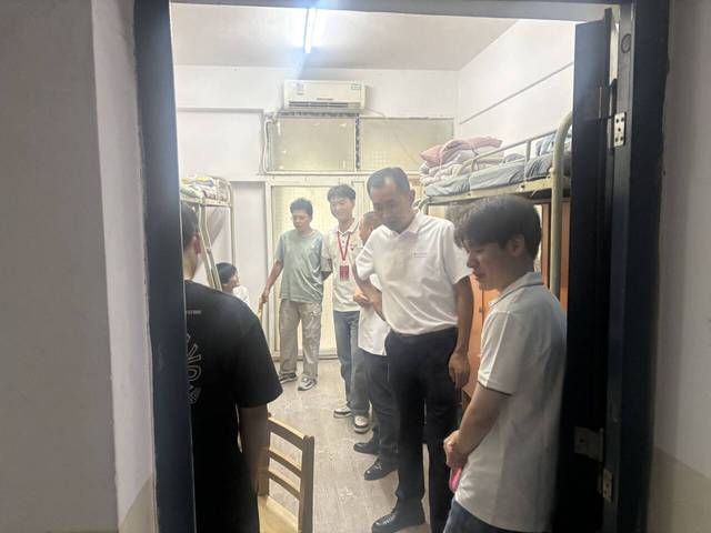 走访过程中,领导老师们每走进一间寝室,都与同学们亲切交谈,仔细询问大家对住宿环境的适应情况、饮食是否习惯,以及开学各项准备是否到位。面对新生们提出的专业学习规划、校园生活指南、未来发展前景及就业方向等疑问,老师们耐心逐一解答,同时贴心叮嘱同学们:“要尽快熟悉校园布局,调整好心态融入班级集体,遇到任何困难别慌,第一时间向班主任或辅导员反馈,我们都会全力帮大家解决。”