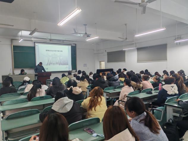 本网讯(撰稿人:张志远 审核人:彭红波)为强化学生设计实践能力,提升专业学习的应用性与针对性,11月27日下午,环境设计系特邀武汉一洋装饰设计工程有限公司王瑞妮总监来到艺术设计学院,以《博物馆展陈设计的空间实践》为主题开展专题讲座。本次活动由魏雷老师主持,环境设计专业2024级、2025级共70余名学生参加了讲座学习。