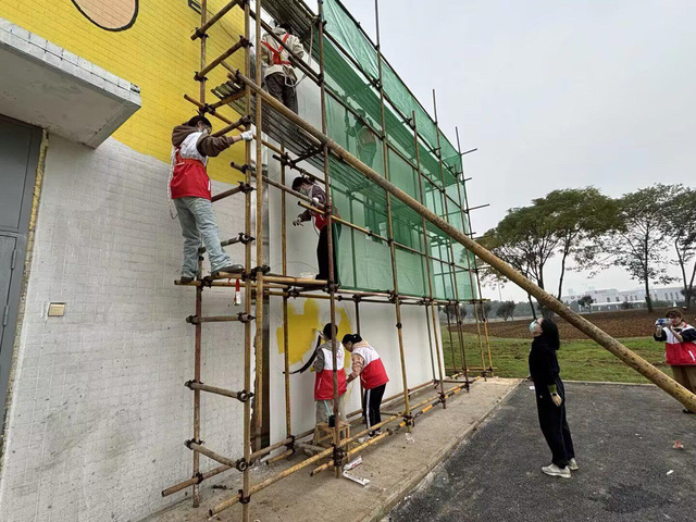 本网讯(通讯员:李佳怡)2025年11月1日下午,湖北经济学院艺术设计学院青年志愿者协会组织20余名志愿者赴马山社区开展“指尖点亮墙隅”环保主题墙绘活动,以闲置墙面为画布创作融入环保理念。
