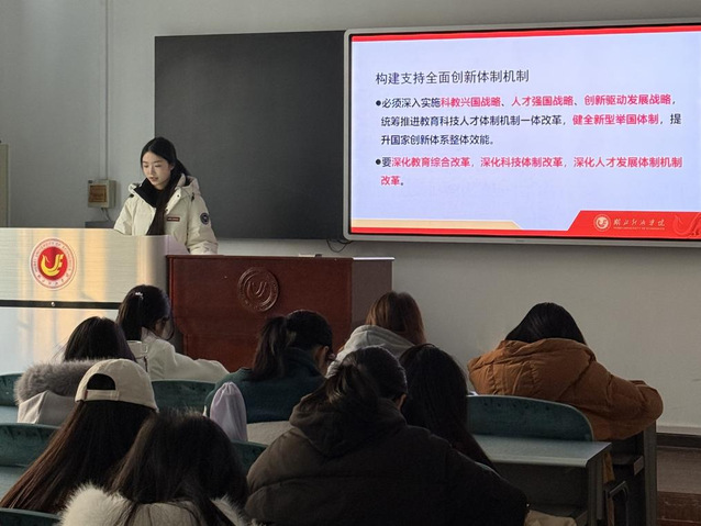 宣讲中,孙凌轩围绕新时代科技创新发展趋势,结合AIGC赋能设计产业、科技与艺术融合案例,生动阐释了视觉设计在科技成果转化、文化传播、产业升级中的重要作用。她鼓励同学们主动拥抱数字技术,将创新思维融入设计实践,以专业能力回应科技强国建设需求,让设计成为连接科技与生活的桥梁。
