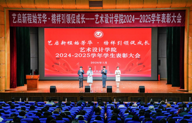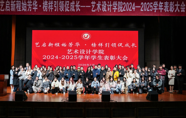 本网讯(通讯员:唐雨柔,审核人:彭红波)2026年1月3日晚,艺启新程始芳华·榜样引领促成长—艺术设计学院2024-2025学年表彰大会在大学生活动中心一号报告厅隆重举行,学院领导、班主任、辅导员以及全体在校学生出席。