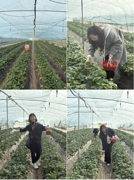 活动现场,满园翠绿的藤蔓间挂满了色泽鲜亮的草莓,大家手提采摘篮,穿梭于田垄间,一边挑选成熟饱满的果实,一边交流工作生活心得,欢声笑语不断。不少老师还拿出手机记录下春日田园风光与采摘瞬间,平日工作的疲惫在轻松愉悦的氛围中得到充分释放。采摘结束后,老师们还漫步田间,享受春天大自然赋予的美好田园景色。